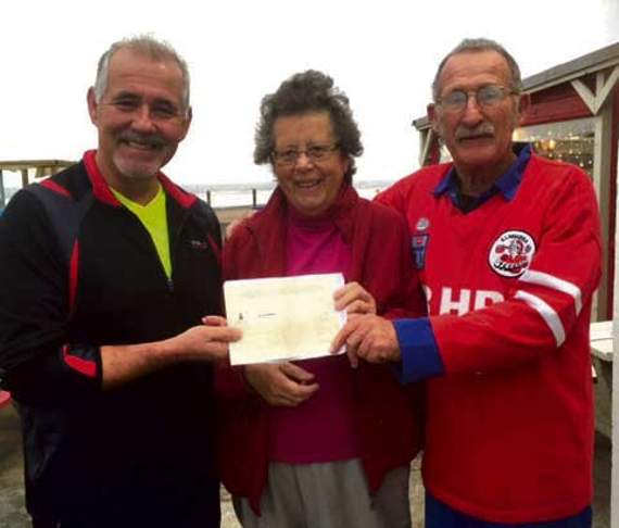 Nigel Pearce Liberal Democrat Cornwall councillor for Bude (left) presents Jean Anderton and Pete Vickery with a cheque for £400 from the Cornwall councillors’ community fund.