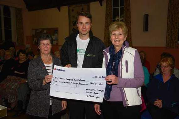 A CHEQUE for £450 was presented to Children’s Hospice South West at Holsworthy Hamlets Flower Club’s meeting at Holsworthy chapel on November 10. The money was raised as a result of a big breakfast a few weeks ago.