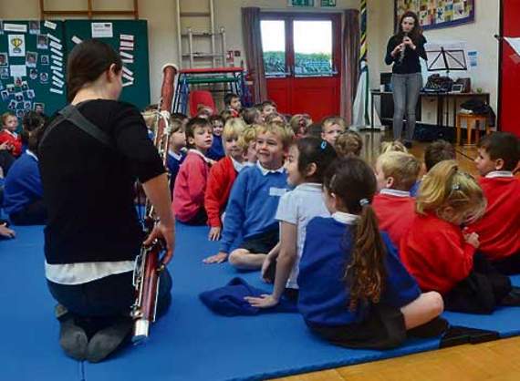 The trio comprises an oboe, clarinet and bassoon player. The artistes attended 14 different schools; Morwenstow in the North and as far down as Camelford, Boscastle and Warbstow. In all, over 1,000 children benefitted from the workshops, particularly enjoying the theatrical presentation.