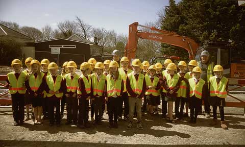This is the first time the children have been allowed in the building, which is nearing completion. They were very excited as they put on their hard hats and fluorescent jackets ready for their tour.