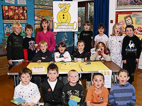 Years 3 and 4 from Holsworthy Primary School are seen with their Children in Need stall. Each class ran a stall, amongst them they were selling cakes,