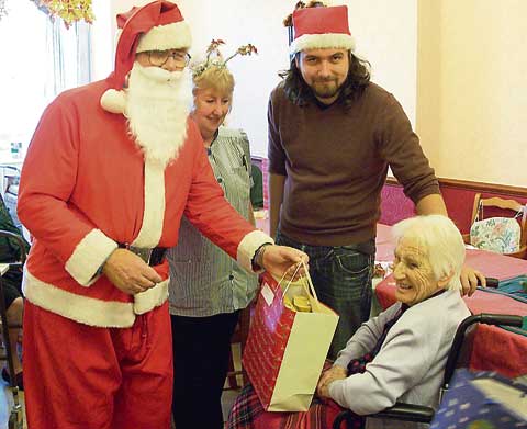 For many years Father Christmas' helper (Raymond Bale) and Bude and Stratton's Mayor have visited residential homes in the town on Christmas day to spread some festive cheer to the residents and to hand out presents. This year, Raymond was surprised not to have heard from the Mayor, Cllr Peter La Broy, so telephoned Bude-Stratton Town Council to check whether the tradition would be continuing as normal, but they told him the Mayor would not be taking part. Not willing to let the elderly people down, Father Christmas' helper went ahead and visited anyway, popping into Eventide, St Hilary's and Stratton Hospital on Christmas morning. He was accompanied for part of the trip by his son, Nathan Bale, who is a North Cornwall District Councillor for the Poughill and Stratton Ward. Cllr Bale, who stepped in at the last minute, told the 'Post' that the visit was something he would do again, and added: "It was a wonderful feeling to be able to assist Father Christmas' helper and I hope he asks me to accompany him again next year. This tradition is clearly important to both residents and staff and should be kept going."