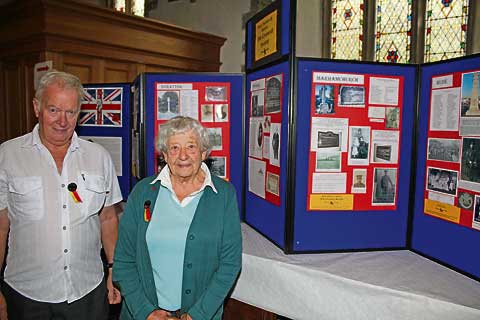 ALAN McIntosh and Audrey Aylmer with the world war one exhibition at St Andrew’s Church, Stratton, as part of this year’s flower festival. Picture: Paul Hamlyn