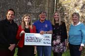 Comedian Johnny Cowling (left), Morwenna and Jenna Matthews, of Twin Harmony, present main trustee Bob Johns with a cheque for £2,350 from proceeds of sales of their CD over the past 12 months. Also shown is trustee Hazel Cartwright. Picture: Paul Hamlyn.
