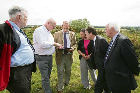 Pictured above, at the site, from left: Brian Lush (Camelford Mayor), Brian Groves (Clerk to Camelford Town Council), Gary Hooper (Land Valuer, Chartered Surveyor, Kivells of Launceston), Susan Weick (CSA Architects, Truro), David Harris (Stephens and Harris Funeral Directors, Camelford) and David Bray (Brays Funeral Directors, Wadebridge).