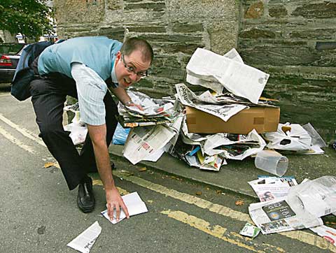 There was a clean-up operation in Camelford on Tuesday after bags of rubbish left outside properties in Chapel Street were split open and strewn across the road. Clerk to the town council, Mr Brian Groves, contacted the Street Ranger in Bodmin who is responsible for the area, and a team were sent to the town to clean up the mess.