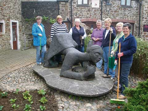 The women were concerned about the shabby cobbles and untidy flowerbeds surrounding the sculpture and, having contacted Torridge District Council for permission, set to work, cleaning, brushing and planting.