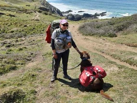 Christine took adorable five-year-old chocolate Labrador Gino off the rescue centre’s hands in 2019, and Gino is joining her on the once in a lifetime trip, with the duo known as the ‘Yappy Hikers’.