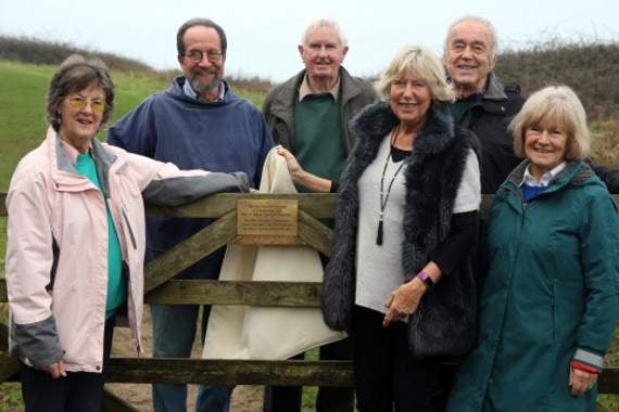 A PLAQUE has been fixed to the gate on Church Path, leading to Efford Downs in Bude, to commemorate the saving of the land by the town more than 30 years ago.