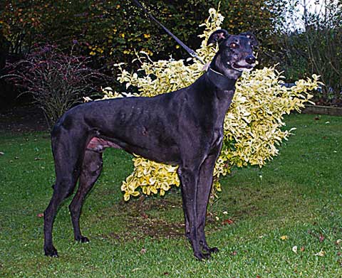 "Tiggy is just one of many lovely black retired greyhounds we are looking to home. We think black greyhounds are stunning — and we always seem to have more black dogs and bitches than any other colour. Greyhounds are very placid and are therefore particularly good with children. But they also make excellent companions for the elderly as they are loving animals and do not need large amounts of exercise. We always try to match a suitable dog with the requirements of the future owner."