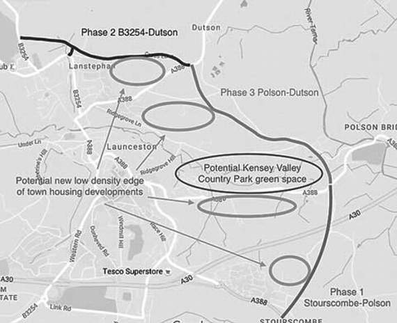 A document produced by the working group shows this ambition would be in three phases — phase one linking the new roundabout on the A388 to Polson; phase two in the north would link St Stephens at the B3254 and Dutson, while phase three, Polson to Homeleigh, would join up the first two phases.