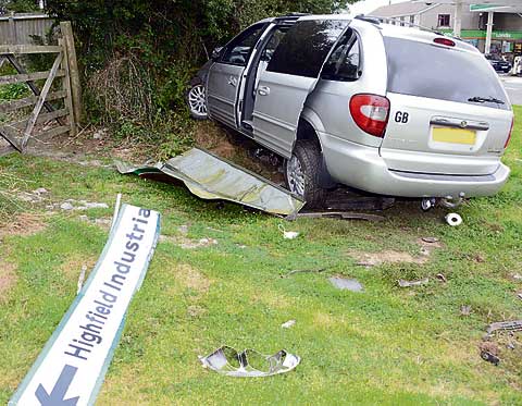 A CRASH occured on the A39 road at Valley Truckle, on Thursday, when a road sign was demolished a car was damaged, but no one was hurt.