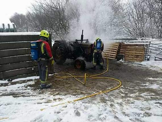 The team, armed with their 4x4 appliance, waded through the snow to get to the tractor near Kilkhampton just after 6am. The fire was quickly extinguished using a hose reel and breathing apparatus.