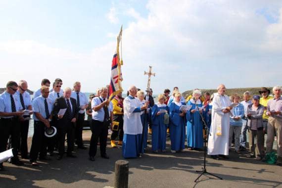 A large crowd gathered in the lovely summer weather for the traditional service to give thanks and acknowledge the importance of the sea. Thanks were given to the RNLI lifeboat volunteers and fundraisers, the Coastguard Rescue Team and RNLI beach lifeguards for their role in protecting and helping everyone who uses the sea and coastline, whether that be for work or pleasure. Thanks and prayers were also given for all the organisations and individuals who are working hard to protect and repair the damage to the oceans.