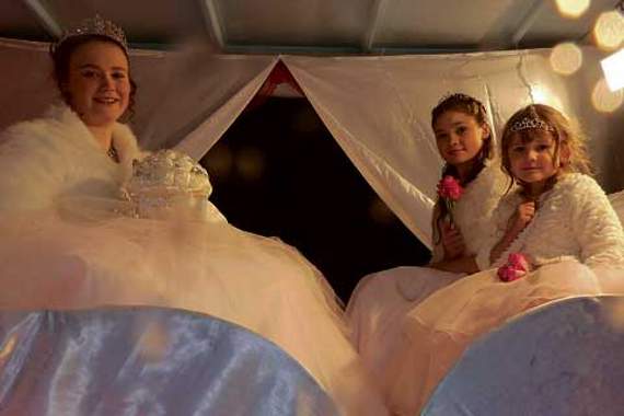 While the floats and visiting ‘Royalty’ from Bradworthy, Bridgerule, Hatherleigh and Launceston were assembling for judging at the industrial estate, the evening began with the crowning of Holsworthy’s Carnival Queen, 13-year-old Katie Hollis, and Fairy Queen, 10-year-old Lara Hill, on the balcony of the White Hart.