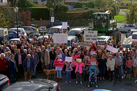 AROUND 100 people went to the car park of the Bullers Arms in Marhamchurch on Sunday to protest the hotel's loss of the use of the car park and beer garden.