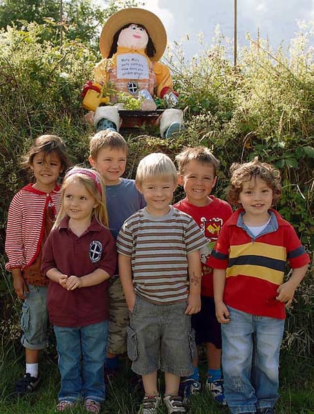Children at St Piran's Playschool, Delabole were the winners of this year's scarecrow competition, held in the village at the start of the carnival week. The children of St Piran's Playschool helped to make their 'Mary Mary Quite Contrary' scarecrow with the aid of Sue Woodward (staff) and Chantelle Binney (student). Twenty two scarecrows were entered in this year's competition with second prize going to Chris and Pauline Hore at Medrose with 'Delabole.Com' and third prize going to Paul and Kim Piper at Belmont Close with 'Witches'. The carnival committee were very pleased with the number of entries, and the very high standard meant the judges had a difficult task picking a winner.