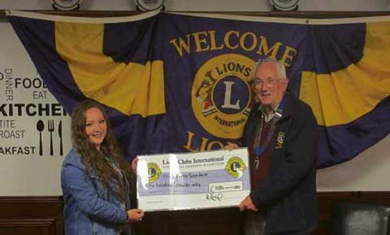 At their social meeting on May 18, the Lions donated £100 to local young woman Lauren Sanders to help pay for her trip to Kenya.