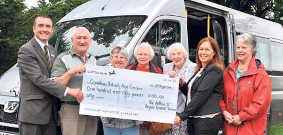 Arthur W Bryant Funeral Directors recently presented a cheque for £150 to the Camelford Age Concern Pop-In and community minibus.