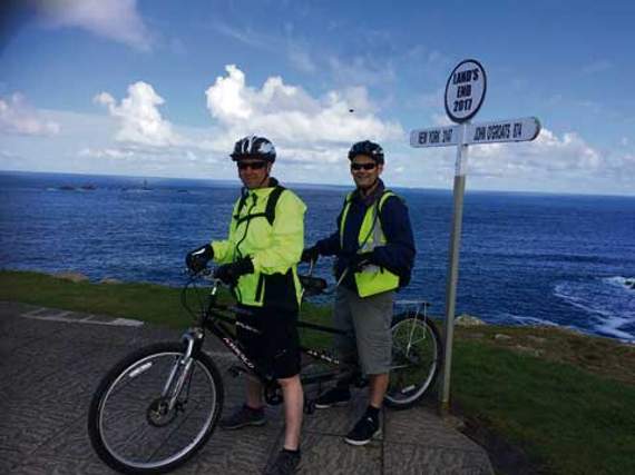 The pair cycled on a tandem bike, travelling from Land’s End to Launceston, from Friday, May 19 to Saturday, May 20.