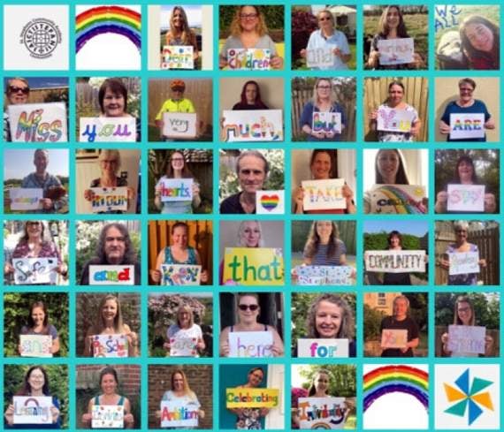 So they co-ordinated a collage of pictures featuring themselves holding a word that contributed to a message to the children: