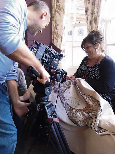 During the hand stitching process of the countless French knots used to represent trillions of microbes living on a person's skin, Rebecca was able to share her progress at #StitchingScience sessions across Devon and Cornwall.