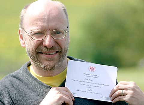 In recognition for this work, all carried out in his spare time, Andy was named one of STEMNETs top six 'Most Dedicated Ambassadors,' receiving a certificate from Roger Highfield, the Editor of the New Scientist, at the House of Lords reception in London.