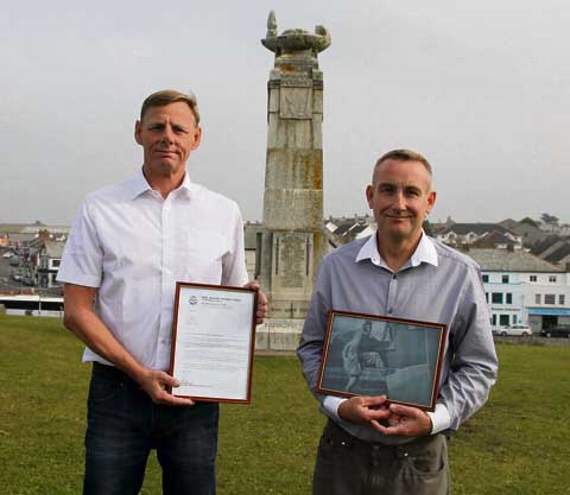 On Armistice Day, Dominic and David placed a poppy cross at Bude War Memorial, alongside a laminated sheet with a picture of the pilot and the story, so that he would be remembered among all the other servicemen on Remembrance Sunday.