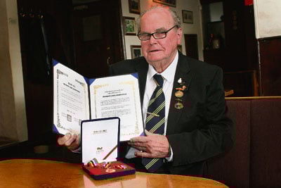 Henry Cole – who was made a Freeman of Newton Abbot in 2011 – was presented with the medal by a member of the Korean Veterans' Association who called at the Sandygate Inn, Kingsteignton, where he lives with his son Barry, the pub manager, and his partner, Heather Brown.