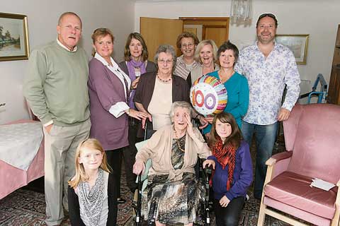 Family and friends gathered for a party to celebrate the 100th birthday of Ivy Brimacombe on Thursday, October 21 at Deer Park Nursing Home, Holsworthy. With five generations of family, reaching to four great, great grandchildren, and several friends visiting throughout the day, it was a busy occasion. Born into a farming family at Newlands, near Bradworthy, Ivy was the youngest of the seven children of Tom and Polly Sillifant. In 1930 she married Jack Brimacombe and they had two children. Together they farmed at Lufflands, near Bradworthy, until retirement when they moved to Holsworthy. They enjoyed 71 years of marriage, until Jack's passing in 2000. The cake and food was supplied by Deer Park, and a wonderful basket of flowers was brought by Gordon Temblett, who, as a young boy, was sent as a wartime evacuee to stay with Jack and Ivy at Lufflands, and who has stayed in contact with the Brimacombes ever since.