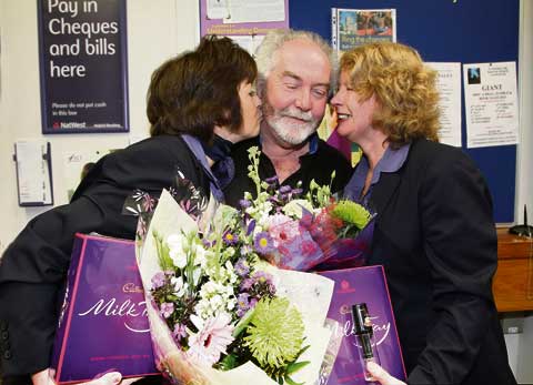 Business owner Andy Bromfield of A R Bromfield and Sons recovery garage presented bank staff with flowers and chocolates on behalf of the community, to say thank you for their outstanding service.