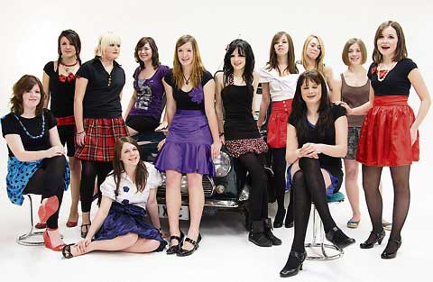 As part of the promotion for the fashion show a group of Year 10 and Year 11 textiles students took part in a photo shoot at a photographic studio owned by Bott Ltd. As one of the themes for this year's fashion show was 'The 60's', an original Mini car was used as a background to the photographs. The car was kindly loaned by Ian Miles, who works at Bott, and it made the perfect backdrop for the pictures.