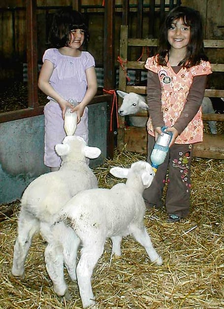Our picture shows Shannon and Kaya Kirby feeding the lambs.