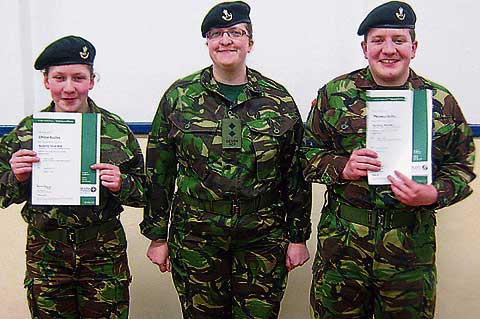 TWO local Army Cadets have been awarded activity first aid certificates after successfully attending a weekend training camp run by the Army Cadet Force (ACF).