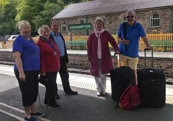 The total journey by train to Milan is just over 970 miles taking about 18 hours. The mayor of Okehampton, Cllr Jan Goffey, is pictured with Chris and Sarah and Cllrs Janet Carpenter who went to Exmouth and Dr Michael Ireland, chair of OkeRail CIC, who, like the mayor, enjoyed several hours in Teignmouth!