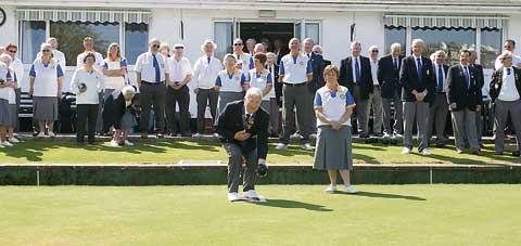 Kensey Vale Bowling Club President John Burt delivers the first wood after Vice-President Nicola Gilbert had cast the first jack to open the 2010 season.