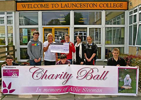 Following Alfie Sleeman's funeral in November last year, £1,600 was kindly given through donations and at a Memorial Ball held at the White Hart Hotel on February 28 a further £2,396.96p was raised. A presentation to CLIC Sargent Specialist Nurse Tanya Crago was made at Launceston College on Thursday April 30 by Alfie's brother Kez and close friends who organised the ball. Paula, Gra, Rosie, Kez and Fern Sleeman would like to thank (belatedly) everyone who attended Alf's funeral last November. Although it was a sad occasion we were overwhelmed by the love and support from everyone there. We hope it was a fitting tribute. Paula would also like to mention that if anyone would still like to make a donation they can go on the web page http://www.bemycharity.com/alfiesleeman">www.bemycharity.com/alfiesleeman.