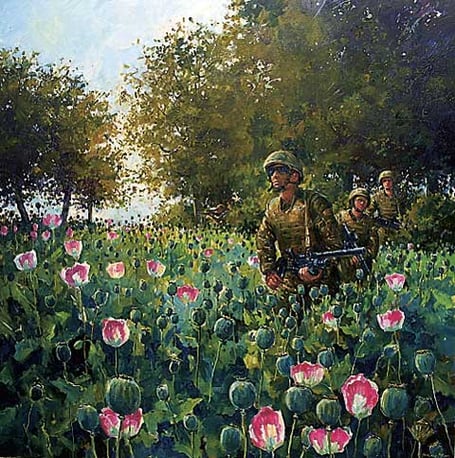 Much of Andrew's work is inspired by the landscape and coastal scenery of the South Devon but, having been commissioned in 2010 to document 40 Commandos tour of Sangin, he was appointed official war artist early in 2011 and deployed with 3 Commando Brigade to Afghanistan.