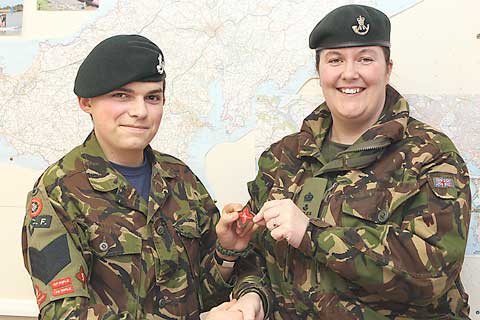 ARMY Cadet Serjeant Jack Pascoe from Launceston was presented with his 4 Star Badge by Major Aimee Mitchell the Inkerman Company Commander.