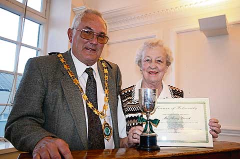 The Mayor David Smith is pictured above congratulating Audrey Cornish on becoming the Freeman of Holsworthy.