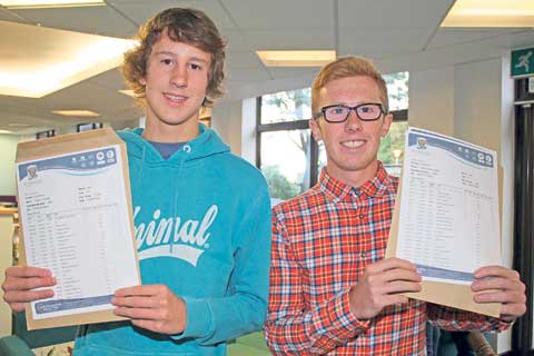 Budehaven Community College students Ashley Chalkley, who obtained five C, three B, two D and one E grades, and Ryan Grigg who earned nine A*, three A and one B grades. Picture: Paul Hamlyn