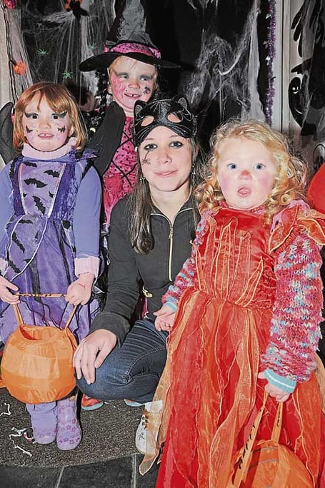 There was plenty of halloween fun in Delabole on Friday night. One of the largest displays in the village was staged by Helen Ferguson of Pengelly, and around 130 people went along to see the magnificent display of skeltons, witches and pumpkins. The turnout in the village was a great success with lots of people in costume. Pictured above, receiving their treats from Anna-Marie Dungey at her haunted house are Amy Heard, Millie Heard and Lucy Ferguson.