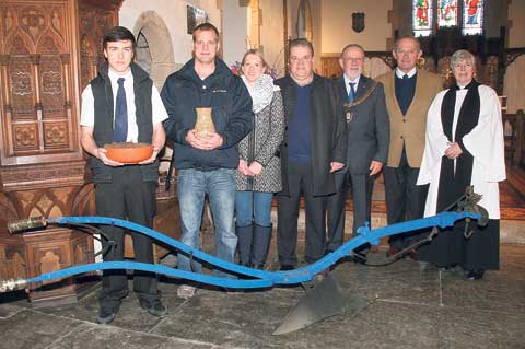 Lloyd Furse brought seed, Christina Long carried a bowl of soil and Ben Longhurst-Prior and Danny Cole brought an old-fashioned horse plough.