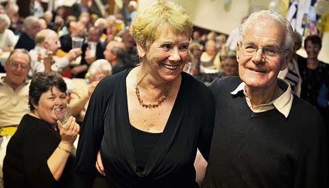Well known St Breward couple, Marg and Viv Crowle, held a party last Friday to celebrate their 50th wedding anniversary. With a packed village hall in St Breward, over 70 friends and family were treated to a huge buffet meal and drinks, and the evening went with a swing, helped by entertainer Bob Seymour from Falmouth providing a wide selection of popular numbers to dance to into the late hours. Viv commented after: "Thanks so much to all who came to join us in our celebration, it was such a great evening and I hope that everyone enjoyed themselves as much as Marg and I. Also our thanks to everyone who helped out during the evening. Finally, thanks to your kind generosity, we are pleased to confirm that over £500 was raised during the evening which has been donated to the Stroke Unit at Bodmin Hospital. A great evening we just won't forget!"