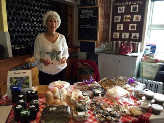 On offer were tree and table decorations, cushions, gifts, Christmas decorations and cards, and a wonderful selection of cakes (including Christmas cakes baked by Jackie).