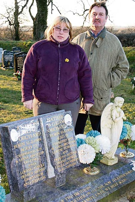 Two ceramic photos were removed from the graves of Nathan and Anthony Orchard, aged 19 and 17, sons of Mr and Mrs Tom Orchard, who died in a road accident just outside Stratton in December 2001 and the glue, which had held the photos in place, was smeared over their names.