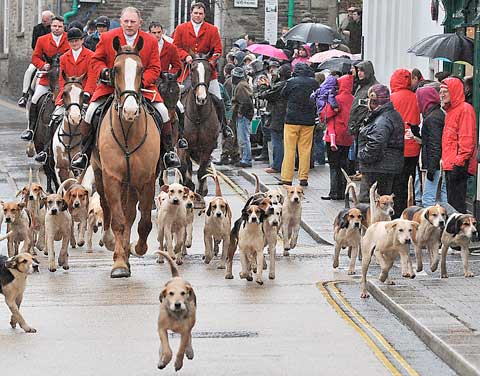 The North Cornwall Hunt set off down the main street through Camelford, led by huntsman Alan Murston followed by the whipper-ins.