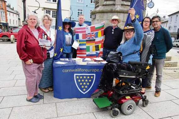 SEVEN members of Cornwall for Europe, a cross party campaign group, took to Launceston town square with a stall on Saturday to talk all things Brexit.