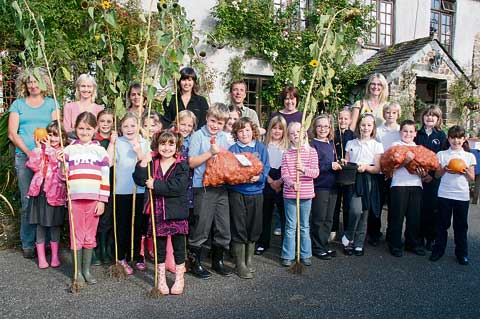 Representatives from Holsworthy Primary, Marhamchurch Primary and Bude Junior Schools gathered together with their entries for the tallest sunflower and heaviest pumpkin competitions.