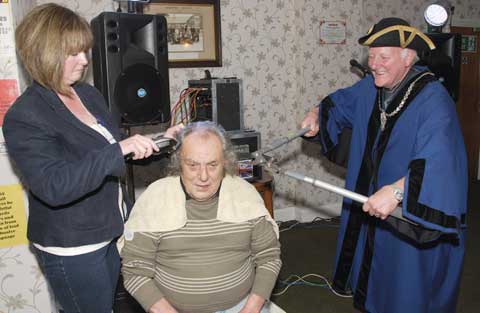 Live music was provided by Max Piper but the star event for the evening was the 'shearing' of Dino Ellis's head, which was carried out by Samantha Down, stewardess of Holsworthy Social Club and assisted by Holsworthy Portreeve Phil Cole.